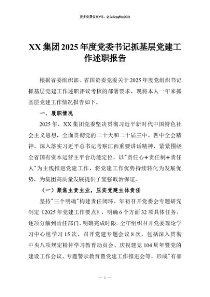 【七哥公文】2025年:XX集团2025年度党委书记抓基层党建工作述职报告+更多免费公文+VX:QiGeGongWen2024