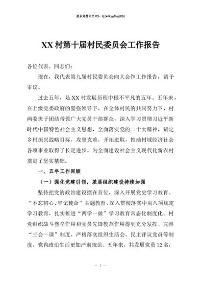 / 【七哥公文】2025年:XX村第十届村民委员会工作报告+更多免费公文+VX:QiGeGongWen2024