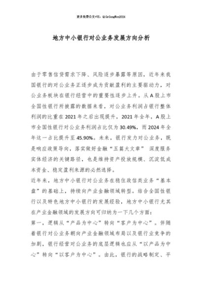 / 【七哥公文】2025年:地方中小银行对公业务发展方向分析_副本+更多免费公文+VX:QiGeGongWen2024