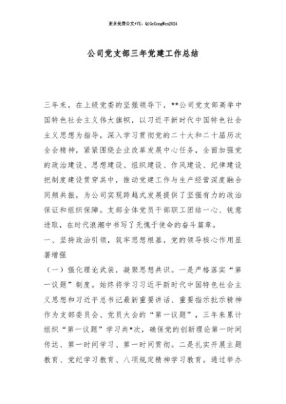 / 【七哥公文】2025年:公司党支部三年党建工作总结_副本+更多免费公文+VX:QiGeGongWen2024