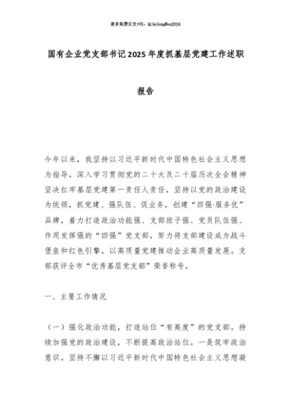 【七哥公文】2025年:国有企业党支部书记2025年度抓基层党建工作述职报告_副本+更多免费公文+VX:QiGeGongWen2024
