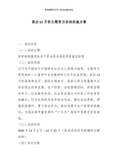 / 【七哥公文】2025年:国企12月份主题党日活动实施方案_副本+更多免费公文+VX:QiGeGongWen2024