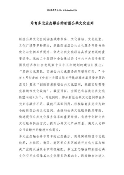 / 【七哥公文】2025年:培育多元业态融合的新型公共文化空间_副本+更多免费公文+VX:QiGeGongWen2024