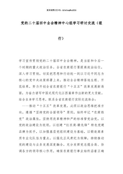 【七哥公文】2025年:党的二十届四中全会精神中心组学习研讨交流(银行)_副本+更多免费公文+VX:QiGeGongWen2024