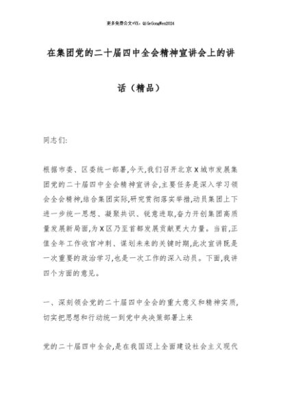 【七哥公文】2025年:在集团党的二十届四中全会精神宣讲会上的讲话(精品)_副本+更多免费公文+VX:QiGeGongWen2024