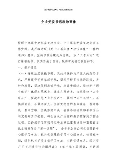 / 【七哥公文】2025年:企业党委书记政治画像_副本+更多免费公文+VX:QiGeGongWen2024