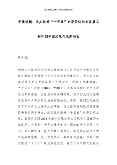 【七哥公文】2025年:党课讲稿:扎实做好“十五五”时期经济社会发展工作开创中国式现代化新局面_副本+更多免费公文+VX:QiGeGongWen2024
