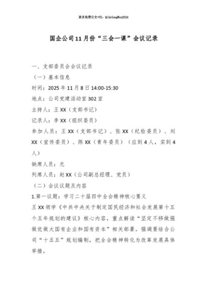 / 【七哥公文】2025年:国企公司11月份“三会一课”会议记录_副本+更多免费公文+VX:QiGeGongWen2024