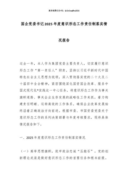 【七哥公文】2025年:国企党委书记2025年度意识形态工作责任制落实情况报告_副本+更多免费公文+VX:QiGeGongWen2024