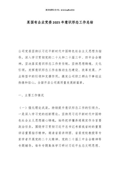 / 【七哥公文】2025年:某国有企业党委2025年意识形态工作总结_副本+更多免费公文+VX:QiGeGongWen2024