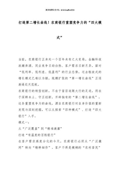 【七哥公文】2025年:打造第二增长曲线!农商银行重塑竞争力的“四大模式”_副本+更多免费公文+VX:QiGeGongWen2024