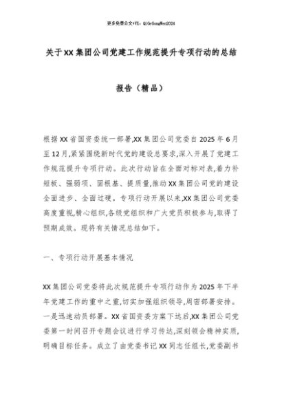 【七哥公文】2025年:关于XX集团公司党建工作规范提升专项行动的总结报告(精品)_副本+更多免费公文+VX:QiGeGongWen2024