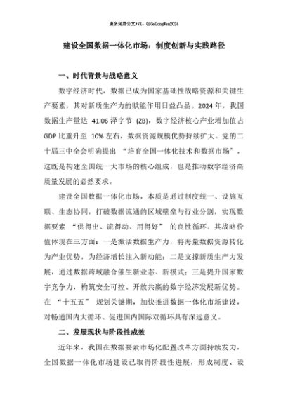 / 【七哥公文】2025年:建设全国数据一体化市场:制度创新与实践路径+更多免费公文+VX:QiGeGongWen2024