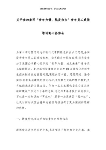 【七哥公文】2025年:关于参加集团“青年力量、城发未来”青年员工赋能培训的心得体会_副本+更多免费公文+VX:QiGeGongWen2024