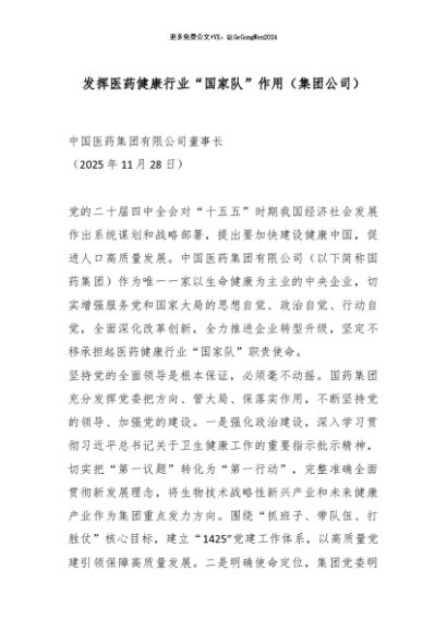 【七哥公文】2025年:发挥医药健康行业“国家队”作用(集团公司)_副本+更多免费公文+VX:QiGeGongWen2024