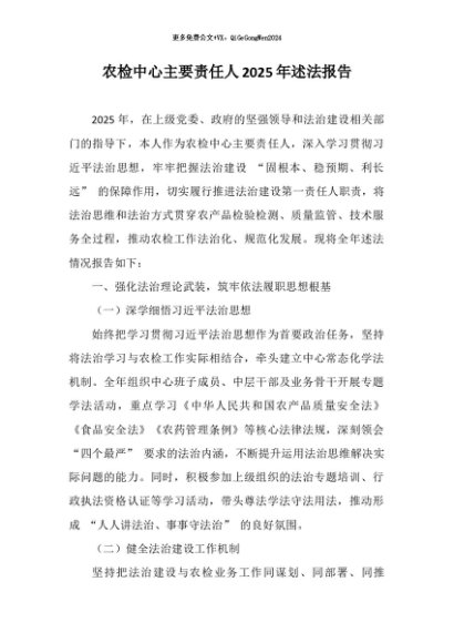 / 【七哥公文】2025年:农检中心主要责任人2025年述法报告+更多免费公文+VX:QiGeGongWen2024