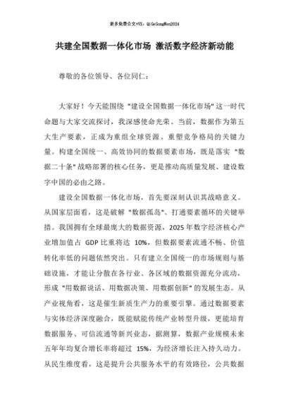/ 【七哥公文】2025年:共建全国数据一体化市场 激活数字经济新动能+更多免费公文+VX:QiGeGongWen2024
