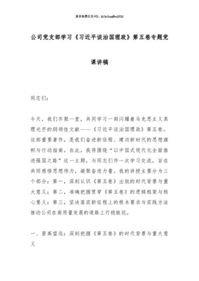 【七哥公文】2025年:公司党支部学习《总书记谈治国理政》第五卷专题党课讲稿_副本+更多免费公文+VX:QiGeGongWen2024