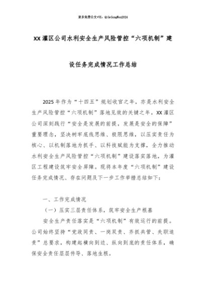【七哥公文】2025年:XX灌区公司水利安全生产风险管控“六项机制”建设任务完成情况工作总结_副本+更多免费公文+VX:QiGeGongWen2024