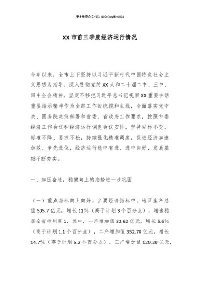 / 【七哥公文】2025年:XX市前三季度经济运行情况_副本+更多免费公文+VX:QiGeGongWen2024