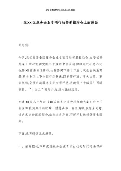 【七哥公文】2025年:在XX区服务企业专项行动部署推动会上的讲话_副本+更多免费公文+VX:QiGeGongWen2024
