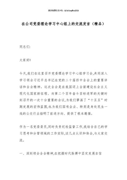 【七哥公文】2025年:在公司党委理论学习中心组上的交流发言(精品)_副本+更多免费公文+VX:QiGeGongWen2024