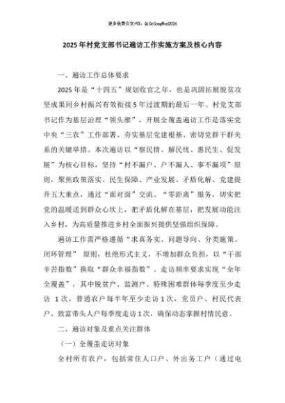 【七哥公文】2025年:2025年村党支部书记遍访工作实施方案及核心内容+更多免费公文+VX:QiGeGongWen2024