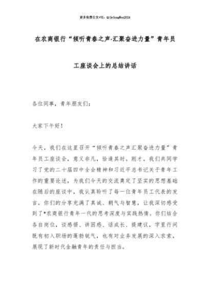 【七哥公文】2025年:在农商银行“倾听青春之声·汇聚奋进力量”青年员工座谈会上的总结讲话_副本+更多免费公文+VX:QiGeGongWen2024