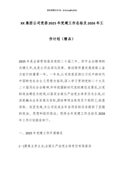 【七哥公文】2025年:XX集团公司党委2025年党建工作总结及2026年工作计划(精品)_副本+更多免费公文+VX:QiGeGongWen2024