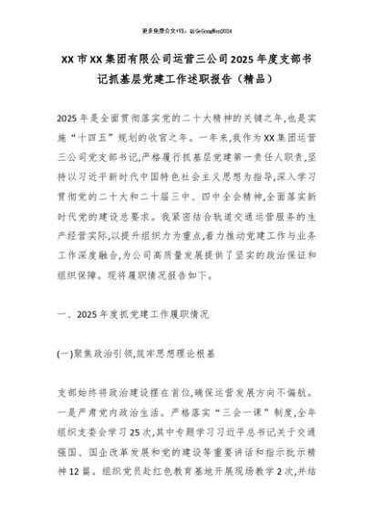 【七哥公文】2025年:XX市XX集团有限公司运营三公司2025年度支部书记抓基层党建工作述职报告(精品)_副本+更多免费公文+VX:QiGeGongWen2024