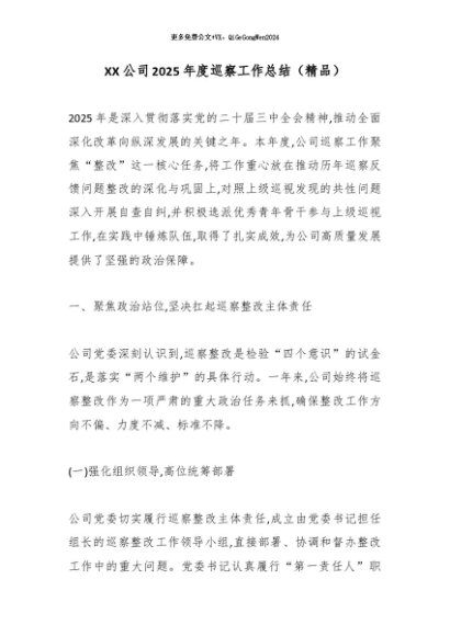 / 【七哥公文】2025年:XX公司2025年度巡察工作总结(精品)_副本+更多免费公文+VX:QiGeGongWen2024