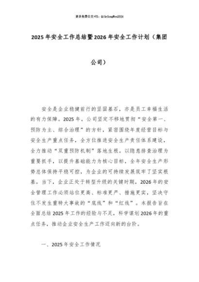 【七哥公文】2025年:2025年安全工作总结暨2026年安全工作计划(集团公司)_副本+更多免费公文+VX:QiGeGongWen2024