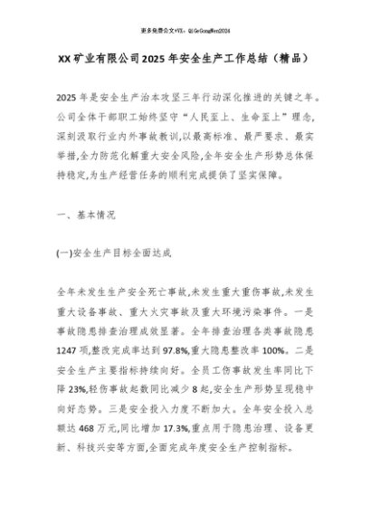 【七哥公文】2025年:XX矿业有限公司2025年安全生产工作总结(精品)_副本+更多免费公文+VX:QiGeGongWen2024
