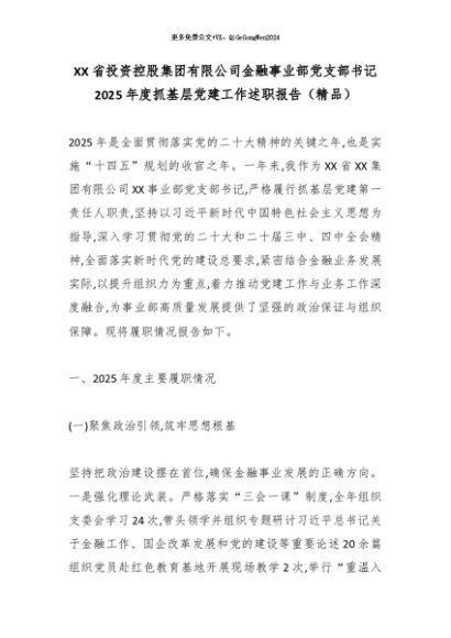 【七哥公文】2025年:XX省投资控股集团有限公司金融事业部党支部书记2025年度抓基层党建工作述职报告(精品)_副本+更多免费公文+VX:QiGeGongWen2024
