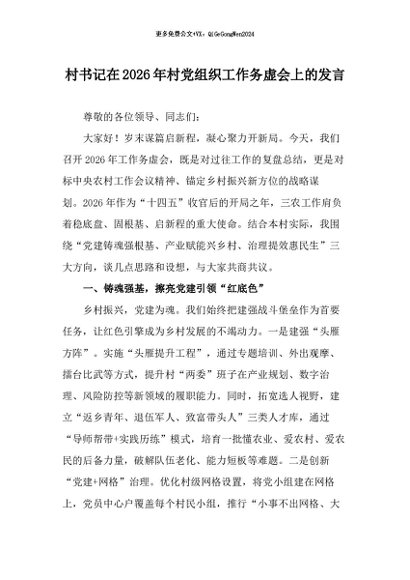 【七哥公文】2025年:村书记在2026年村党组织工作务虚会上的发言_副本+更多免费公文+VX:QiGeGongWen2024