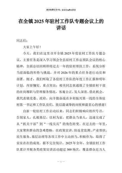 / 【七哥公文】2025年:在全镇2025年驻村工作队专题会议上的讲话+更多免费公文+VX:QiGeGongWen2024