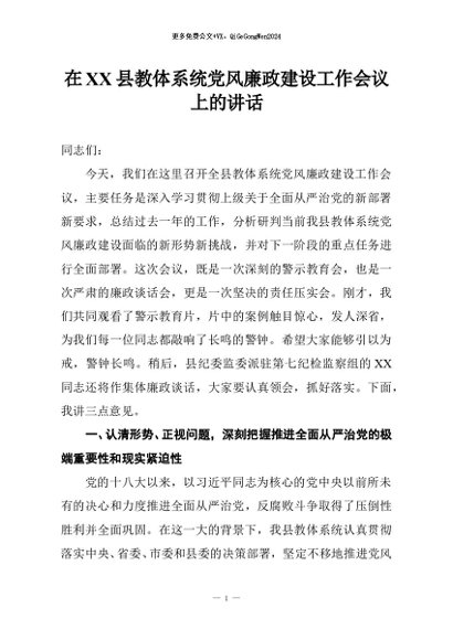 / 【七哥公文】2025年:在XX县教体系统党风廉政建设工作会议上的讲话+更多免费公文+VX:QiGeGongWen2024