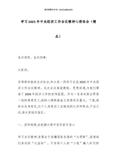 【七哥公文】2025年:学习2025年中央经济工作会议精神心得体会(精品)_副本+更多免费公文+VX:QiGeGongWen2024