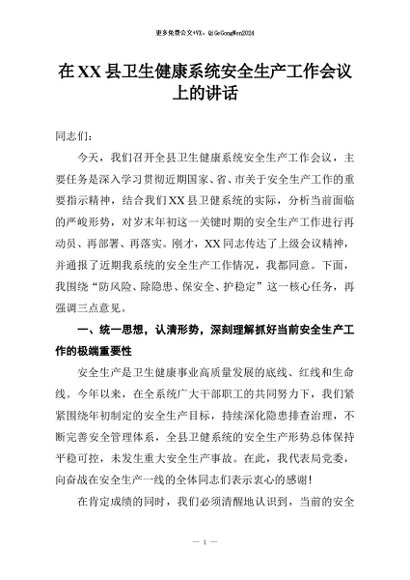 / 【七哥公文】2025年:在XX县卫生健康系统安全生产工作会议上的讲话+更多免费公文+VX:QiGeGongWen2024