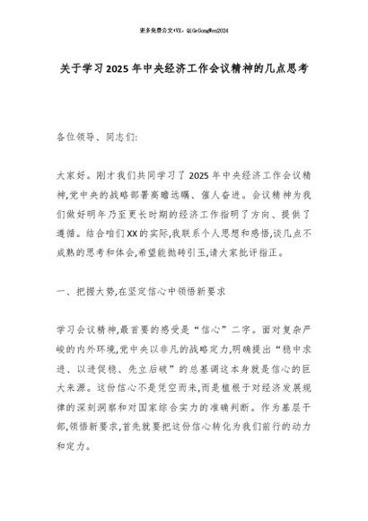 【七哥公文】2025年:关于学习2025年中央经济工作会议精神的几点思考_副本+更多免费公文+VX:QiGeGongWen2024