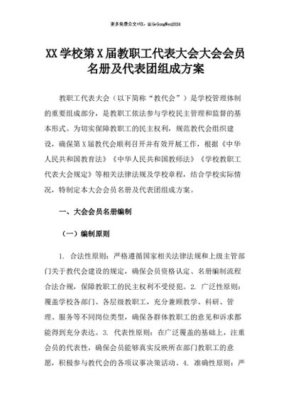 【七哥公文】2025年:XX学校第X届教职工代表大会大会会员名册及代表团组成方案+更多免费公文+VX:QiGeGongWen2024
