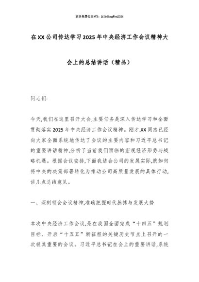 【七哥公文】2025年:在XX公司传达学习2025年中央经济工作会议精神大会上的总结讲话(精品)_副本+更多免费公文+VX:QiGeGongWen2024