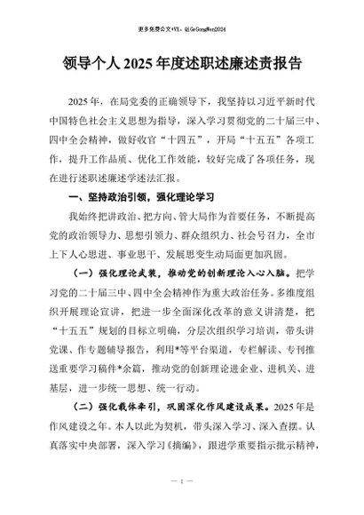 / 【七哥公文】2025年:领导个人2025年度述职述廉述责报告+更多免费公文+VX:QiGeGongWen2024