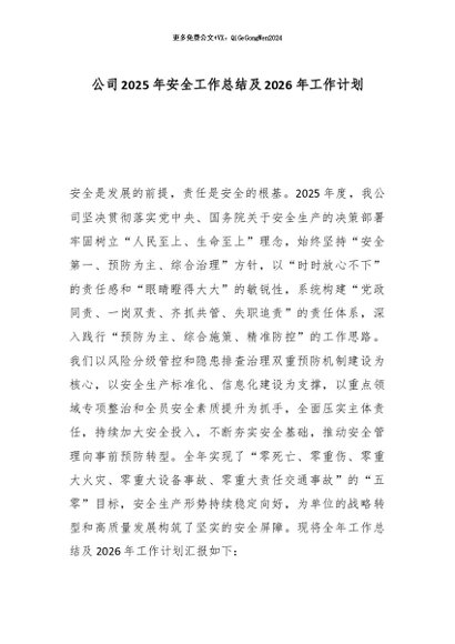 【七哥公文】2025年:公司2025年安全工作总结及2026年工作计划_副本+更多免费公文+VX:QiGeGongWen2024