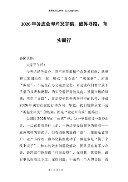【七哥公文】2025年:2026年务虚会即兴发言稿:破界寻路,向实而行_副本+更多免费公文+VX:QiGeGongWen2024