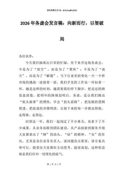 【七哥公文】2025年:2026年务虚会发言稿:向新而行,以智破局_副本+更多免费公文+VX:QiGeGongWen2024