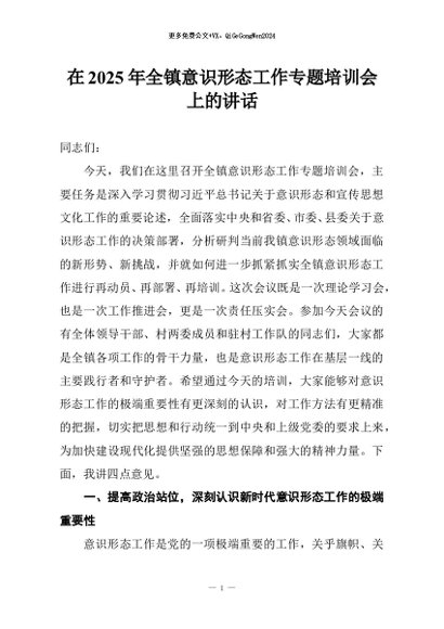/ 【七哥公文】2025年:在2025年全镇意识形态工作专题培训会上的讲话+更多免费公文+VX:QiGeGongWen2024