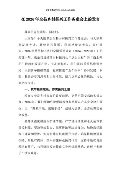 【七哥公文】2025年:在2026年全县乡村振兴工作务虚会上的发言_副本+更多免费公文+VX:QiGeGongWen2024