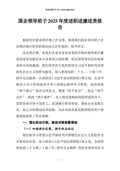 / 【七哥公文】2025年:国企领导班子2025年度述职述廉述责报告+更多免费公文+VX:QiGeGongWen2024