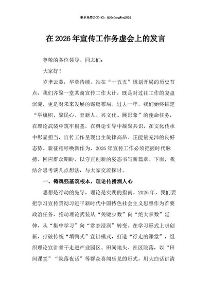 / 【七哥公文】2025年:在2026年宣传工作务虚会上的发言_副本+更多免费公文+VX:QiGeGongWen2024